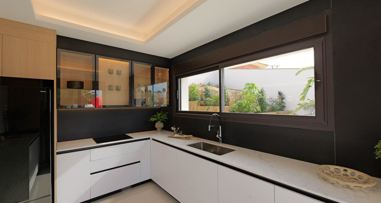 Strefa zewnętrzna została zaprojektowana tak, aby w pełni korzystać z klimatu Costa Blanca — do dyspozycji właścicieli jest prywatny ogród z basenem, kilka tarasów oraz imponujące solarium o powierzchni 80 m², idealne do wypoczynku, opalania czy stworzenia prywatnej strefy chill-out.